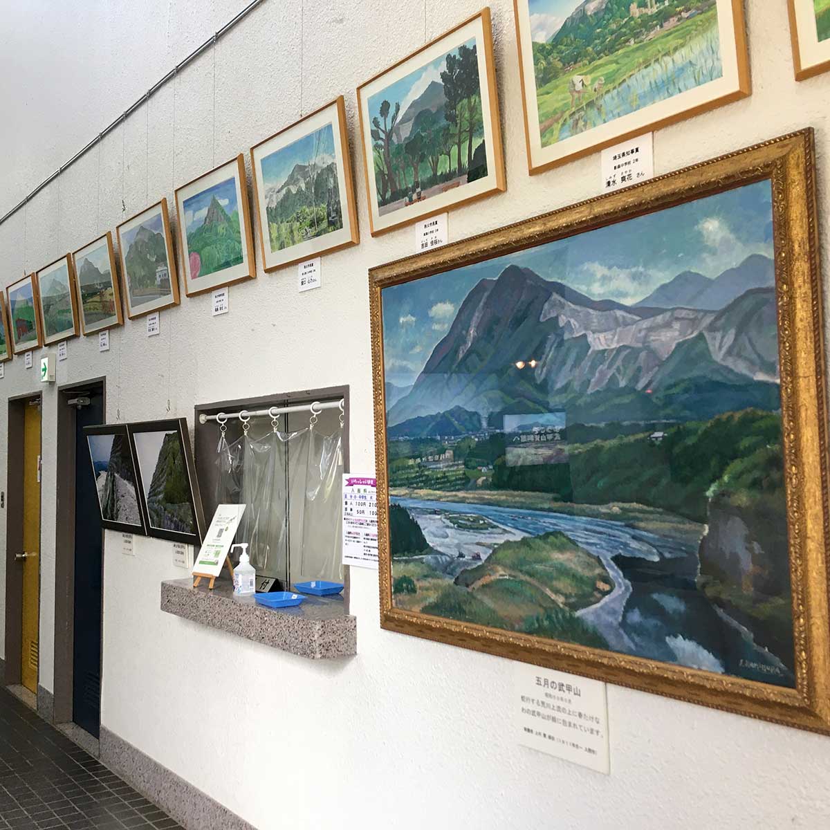 地元の小学生による武甲山の写生画や作文、写真パネルの展示をしています。