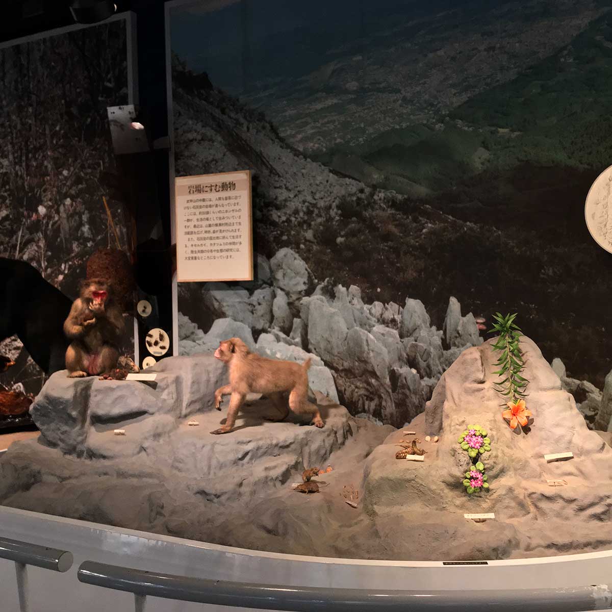 石灰岩の岩場には、ニホンザルの数群が住んでいましたが、今では山麓の森林地帯などに移動し、頭数も増加しています。