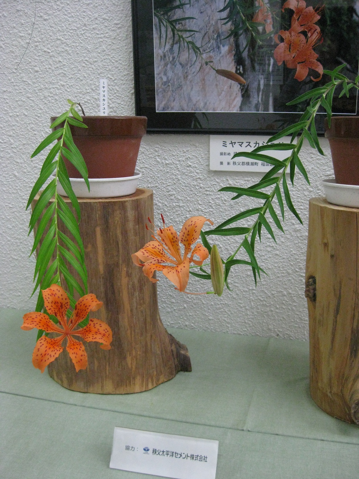 武甲山の希少植物「ミヤマスカシユリ」は絶滅危惧に指定されています。保護、増殖活動を行っている秩父太平洋セメント㈱三輪鉱業所で、今年も鉢植えのものをお借りしました。