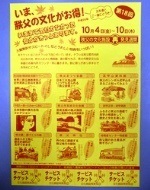 ←チラシ下段のサービスチケットをお持ちいただきますと、武甲山資料館では1枚で2名様まで入館料が無料となります。お得なこの機会に、ぜひお越しください。実施期間は10月10日(木)まで。 8日(火)休館