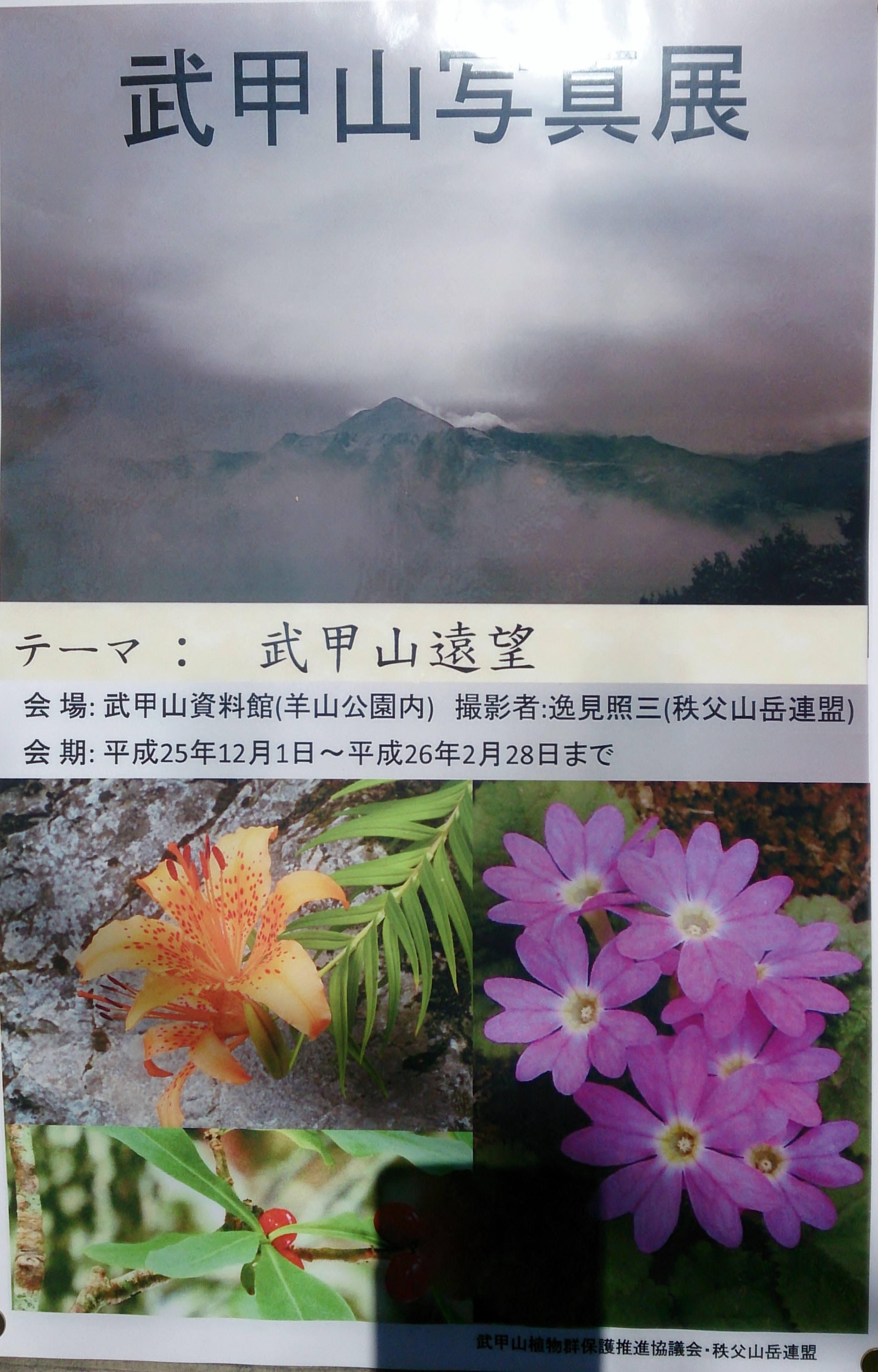 恒例になりました武甲山に咲く春の植物写真展を開催しました。見たことあるけど名前が解らない?この機会に植物の名前を覚えてみませんか!撮影者は秩父山岳連連盟の瀬戸氏です。皆様のご来館をお待ちしております。展示期間は5月31日まで