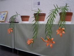 特徴は草丈約80cm程で石灰岩の岩壁から茎は垂れ下がり、鮮やかなオレンジ色の花が上向きに咲くのが特徴で、花弁の間にすかし(空間)ができることからミヤマスカシユリと名付けられました。