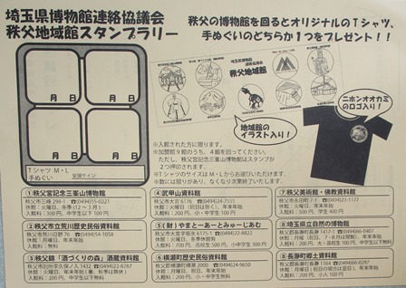 秩父宮記念三峯山博物館、秩父市立荒川歴史民俗資料館、秩父錦「酒づくりの森」酒蔵資料館、やまとーあーとみゅーじあむ、横瀬町歴史民俗資料館、秩父美術館・佛教資料館、埼玉県立自然の博物館、長瀞町郷土資料館、武甲山資料館